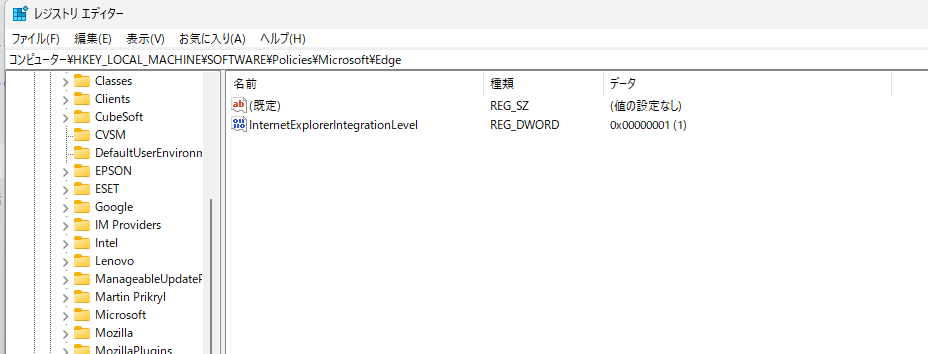 コンピューター\HKEY_LOCAL_MACHINE\SOFTWARE\Policies\Microsoft\Edge